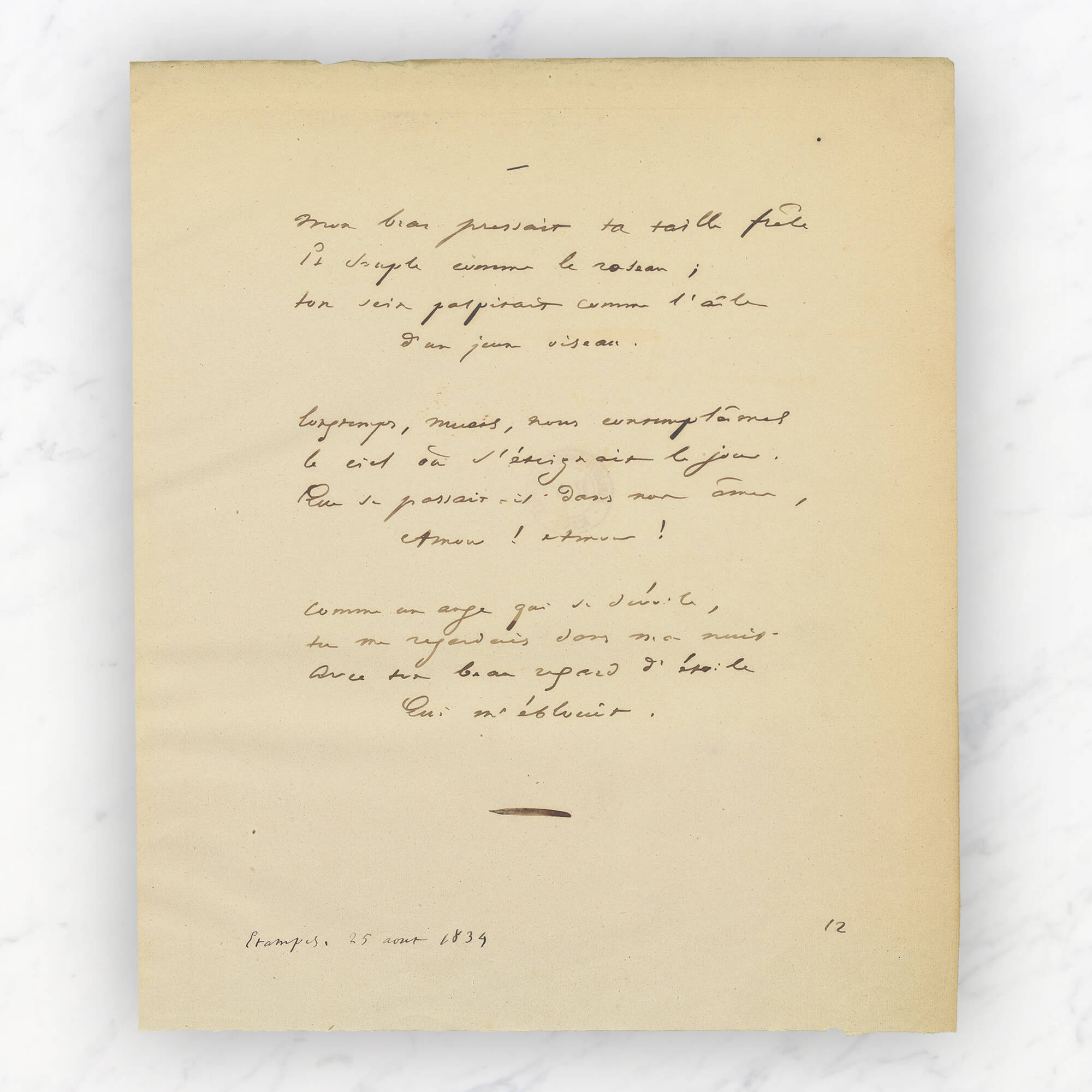 Le manuscrit de "Mon bras pressait ta taille frêle",